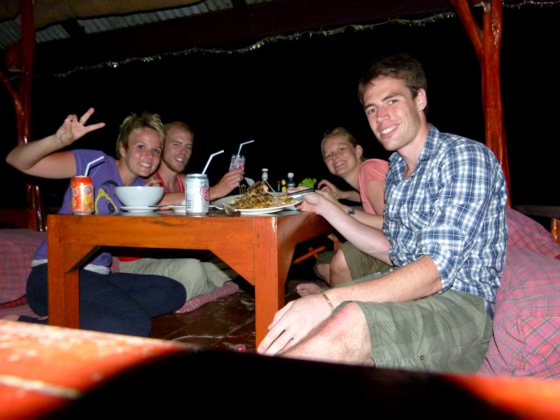 Remkow und Judith sind dann auch noch kurz gekommen und haben ’ne Kokusnuss mitgebracht, von der Remkow fast erschlagen wurde. Philipp und er haben die dann gekillt und wir konnten lecker frisches Kokusnussfleisch essen. Das reichte zum Abendessen allerdings nicht ganz aus, also ab unter die Dusche und anschließend zum Fischrestaurant.